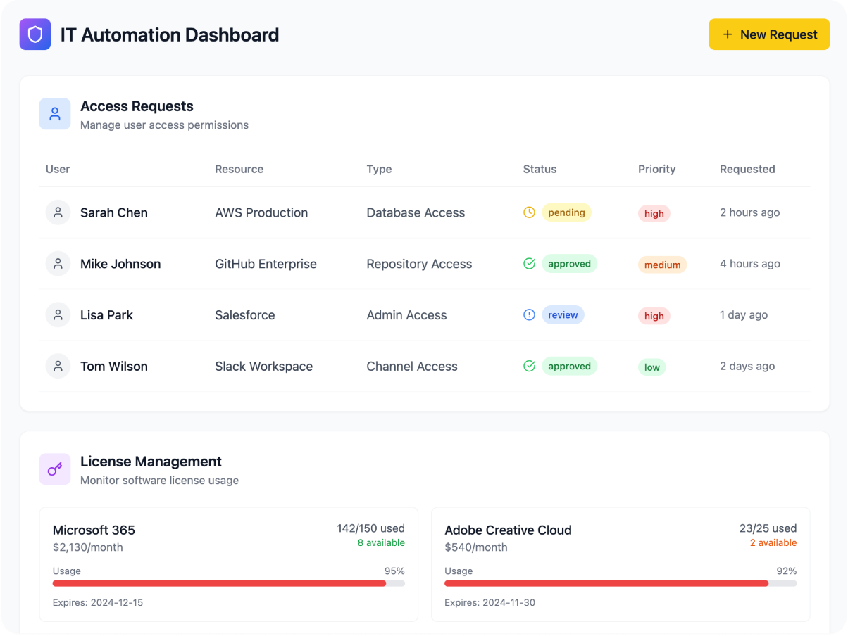 Automates access approvals and provisioning.