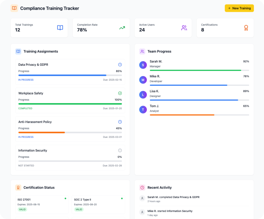 Legal and compliance teams face heavy workloads with contracts, policies, and training. Our apps automate reviews, track compliance, and communicate updates effectively.